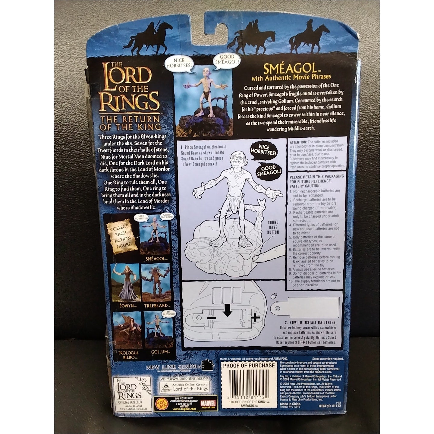 2003 Smeagol with Authentic Movie Phrases Lord of the Rings Action Figure in box